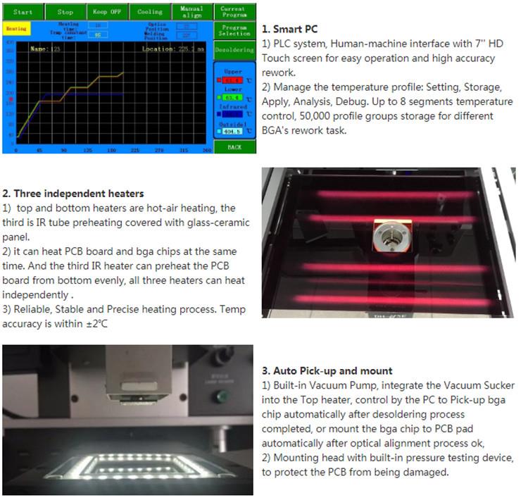 A: ماشین مجدد Dinghua BGA می تواند هیئت مدیره PCB و تراشه های BGA را در همان زمان گرم کند. و سوم بخاری IR می تواند هیئت مدیره PCB را از سطح به طور یکنواخت پیش ببرد، برای جلوگیری از تغییر شکل در PCB در طول روند تعمیر. هر سه بخاری می توانند مستقل باشند.